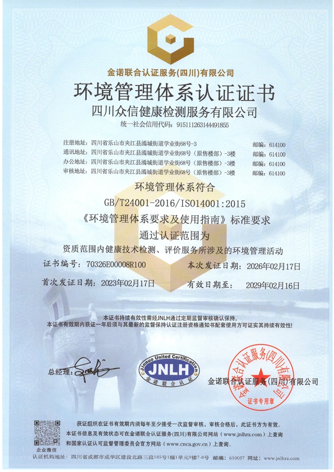 环境管理体系认证证书