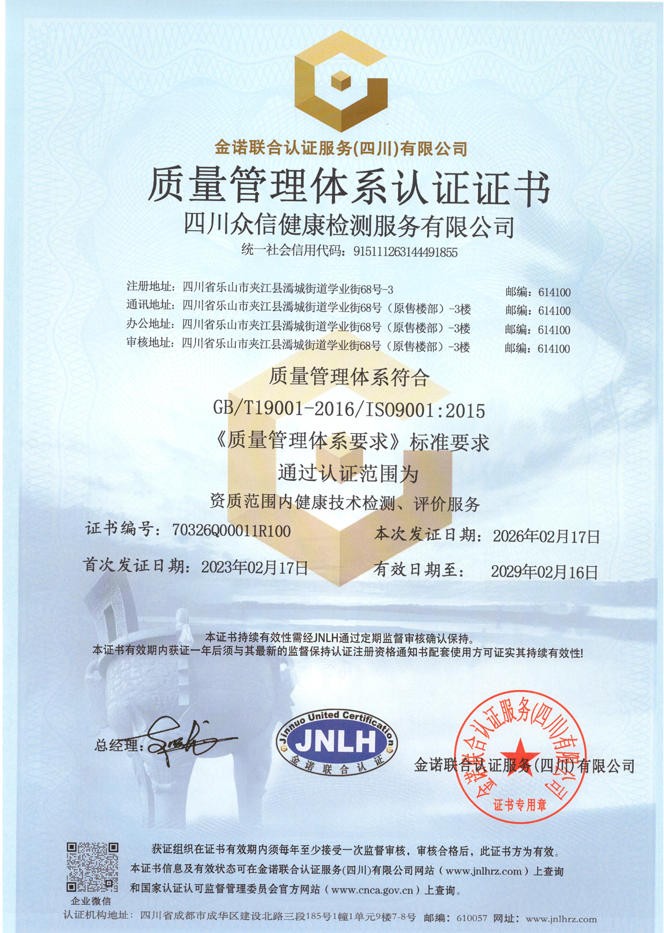 质量管理体系认证证书